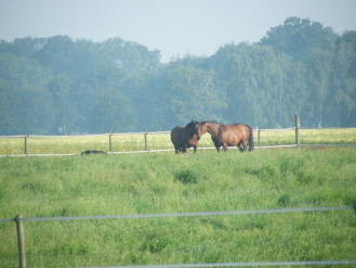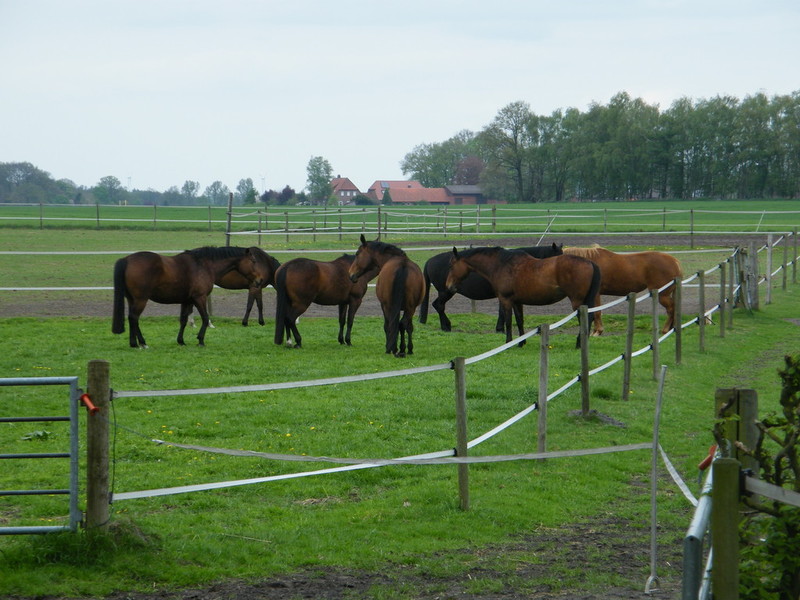 Die Pferde sind immer als Gruppe gemeinsam auf der Weide.