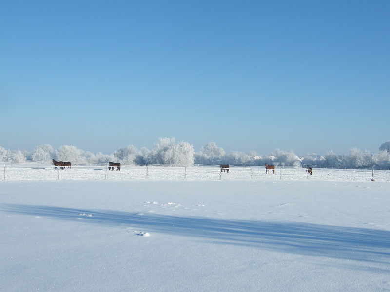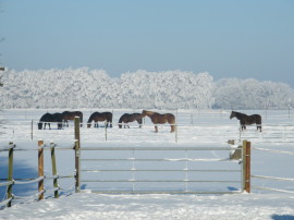 Unsere Pferde kommen ganzjährig auf die Weide; auch im Winter meist zwischen 10.00 und 16.00 Uhr.